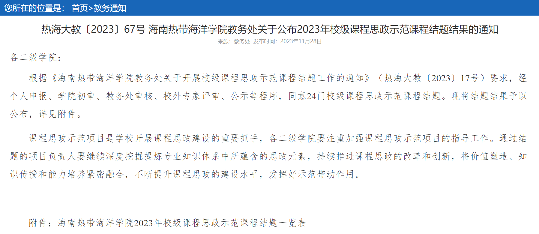 根据太阳成集团tyc151cc教务处发布的《热海大教〔2023〕67号 太阳成集团tyc151cc教务处关于公布2023年校级课程思政示范课程结题结果的通知》,由太阳成集团tyc151cc刘世杰老师主持,太阳成集团tyc151cc刘柏峰老师参与的课程思政示范课程《轮机概论》(RHKSsk2022-08)获结题。