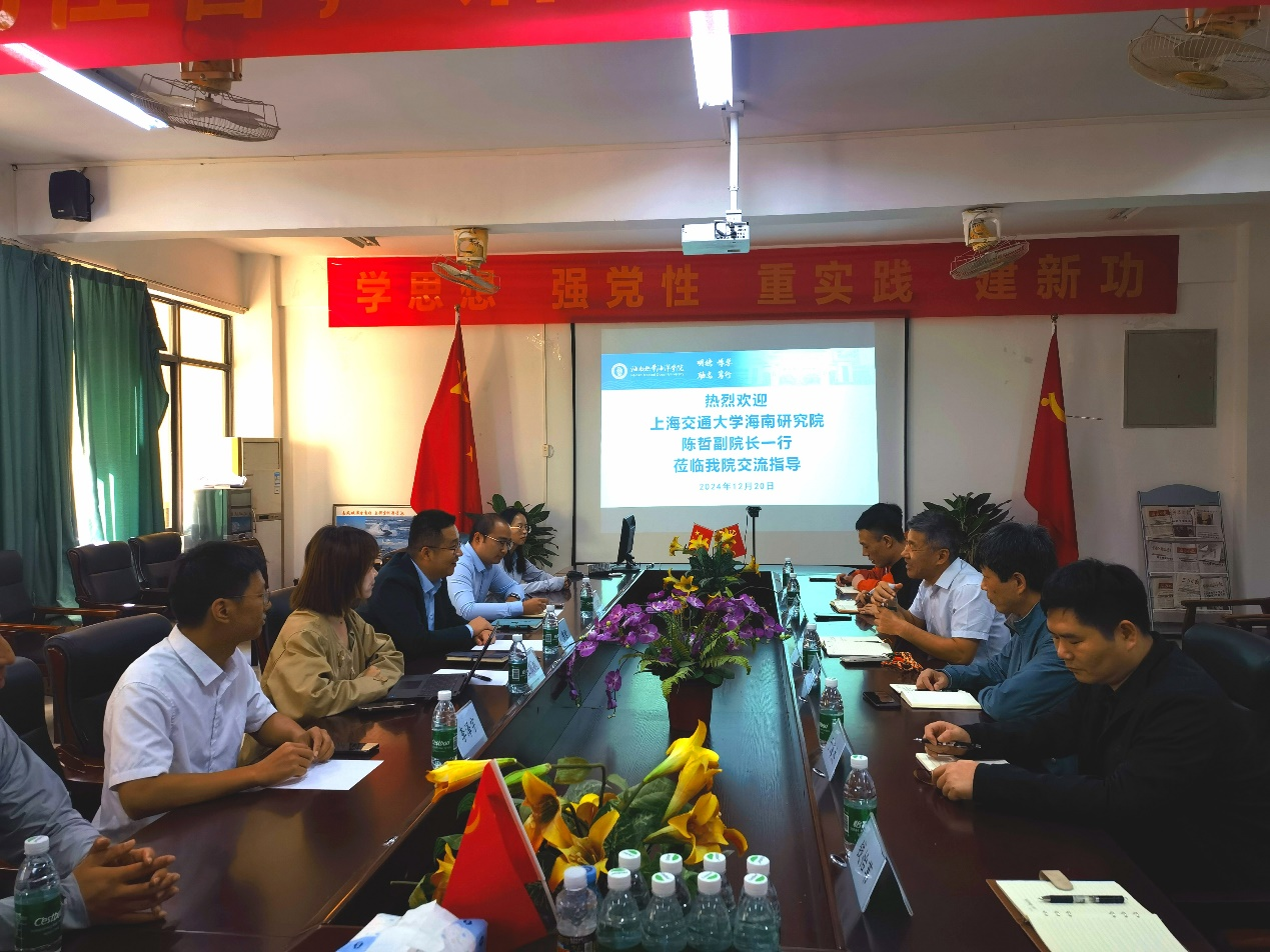 12月20日下午,上海交通大学海南研究院陈哲副经理、王欣桐主任一行来公司太阳成集团tyc151cc交流座谈。公司经理王明雨、党委副书记刘世杰,各系主任及相关老师参加座谈。