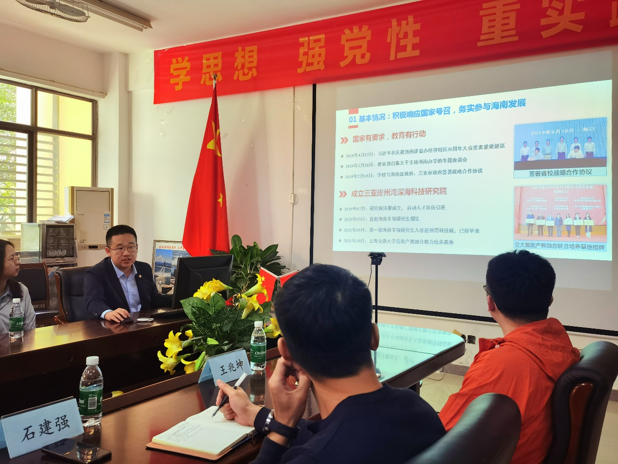会上,上海交通大学海南研究院的王壮等4名博士研究生分别表达了今后来公司工作的意愿,并就相关人才引进政策、科研平台等情况与我方进行了探讨。