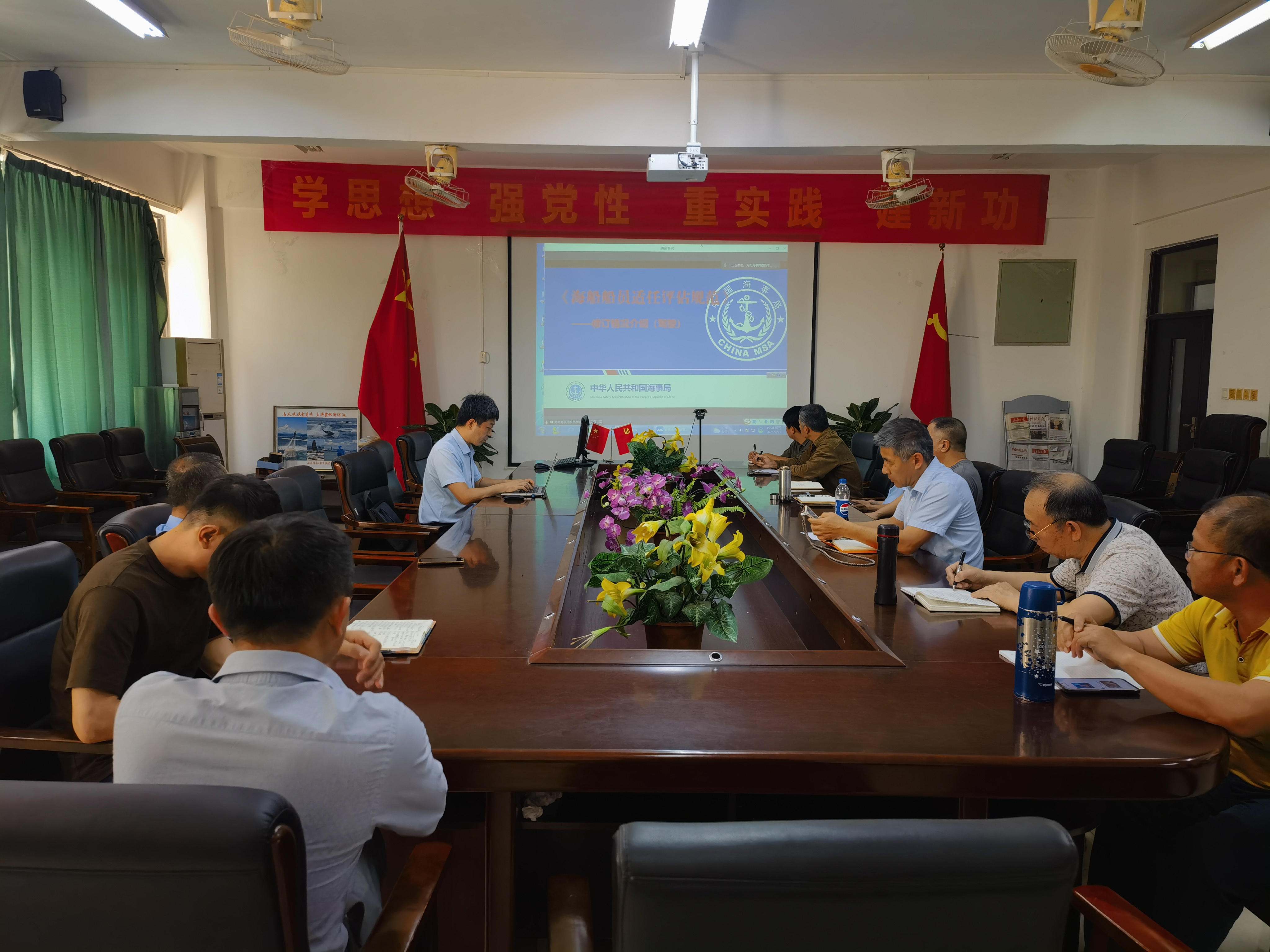 太阳成集团tyc151cc高度重视此次宣贯会,提前通知并组织教师全员参与。王明雨经理要求全体教师要将新版船员考试评估办法的新要求落实到教学方方面面,要求积极落实三部法规文件的各项新要求。
